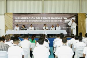 Por su parte, el director del Aeropuerto Internacional de Chichén Itzá, José Miguel García Vales, explicó que este hangar representa un paso fundamental en la apertura del aeropuerto hacia la industria aeroespacial.