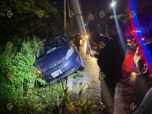 Cancún.- El conductor de un vehículo Ford se salió de la cinta asfáltica cuando circulaba sobre el Periférico la noche de este lunes.