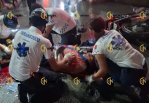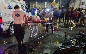 Cancún.- Un motociclista sufrió una fractura expuesta en la rodilla y podría estar en riesgo de perder la extremidad, luego de impactarse de frente contra otra motocicleta.