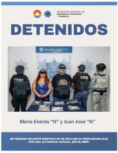 Cancún, Q. Roo., 5 de noviembre de 2025. – En una acción coordinada con la Fiscalía General del Estado y autoridades federales, la Secretaría Municipal de Seguridad Ciudadana y Tránsito (SMSCyT) logró la detención de na mujer y un hombre por su presunta participación en delitos contra la salud, en su modalidad de narcomenudeo.