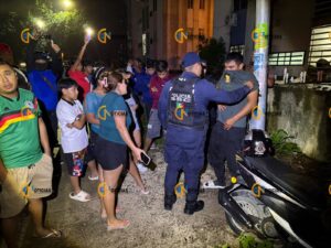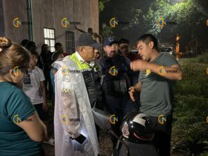 Ante lo ocurrido, los vecinos rodearon al presunto responsable, quien se encontraba en visible estado de ebriedad. Un par de mujeres, al parecer familiares del sujeto, salieron de una vivienda para protegerlo hasta la llegada de las autoridades.