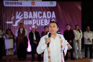 Durante su intervención, el coordinador de la bancada, Wilmer Monforte Marfil, subrayó que las y los 17 diputados de Morena son “diputados de territorio”, que caminan casa por casa y hoy están cumpliendo el compromiso de regresar con la gente a informar lo que se hace desde el Congreso.