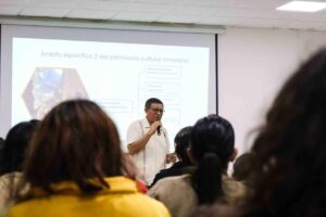 Por lo que respecta al patrimonio intangible, se refirió a que son las expresiones, los conocimientos y las técnicas junto con los instrumentos, artefactos y espacios culturales que las comunidades las reconocen como suyas. “Conecta el pasado, el presente y el futuro, y dota de identidad a las ciudades”, expresó.