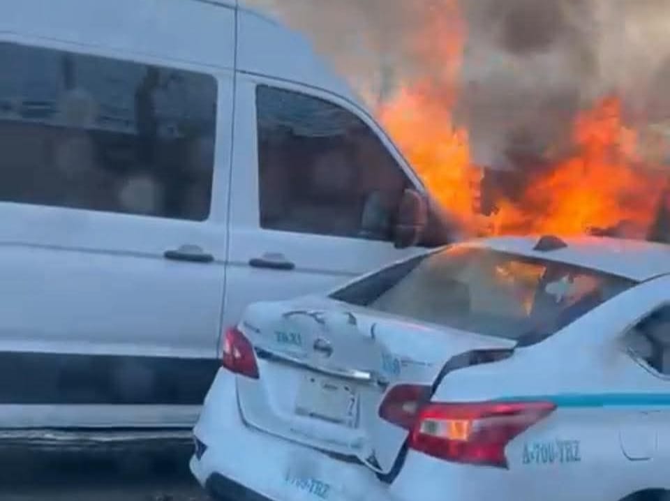 Tras los impactos, la Urvan terminó volcada sobre su costado izquierdo en el camellón central, mientras que los vehículos 2 y 3 se incendiaron minutos después del choque.