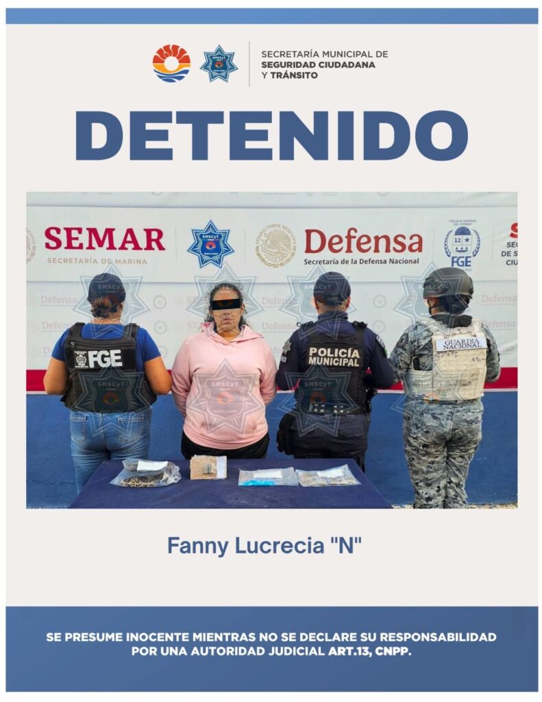Cancún, Q. Roo., 3 de noviembre de 2025. – En una acción coordinada con la Fiscalía General del Estado (FGE) y autoridades federales, la Secretaría Municipal de Seguridad Ciudadana y Tránsito (SMSCyT) logró la detención de una mujer por su presunta participación en delitos contra la salud, en la modalidad de narcomenudeo. Los hechos ocurrieron […]