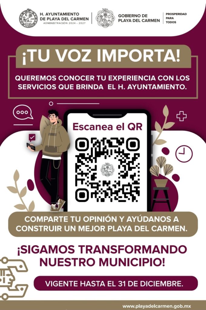 Playa del Carmen, Quintana Roo, 23 de octubre de 2025.- Con el propósito de conocer de primera mano la percepción ciudadana sobre los servicios que administra el gobierno que encabeza la presidenta municipal Estefanía Mercado, la Secretaría de Planeación y Evaluación puso en marcha una serie de encuestas ciudadanas que estarán vigentes hasta el 31 […]