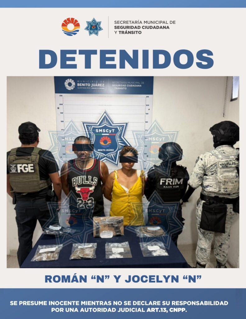 Cancún, Q. Roo., a 29 de septiembre de 2025.- En una acción coordinada entre la Guardia Nacional, Fiscalía General del Estado (FGE) y la Secretaría Municipal de Seguridad Ciudadana y Tránsito (SMSCyT) de Benito Juárez se logró la detención de un hombre y una mujer, presuntos implicados en delitos contra la salud y violación a […]