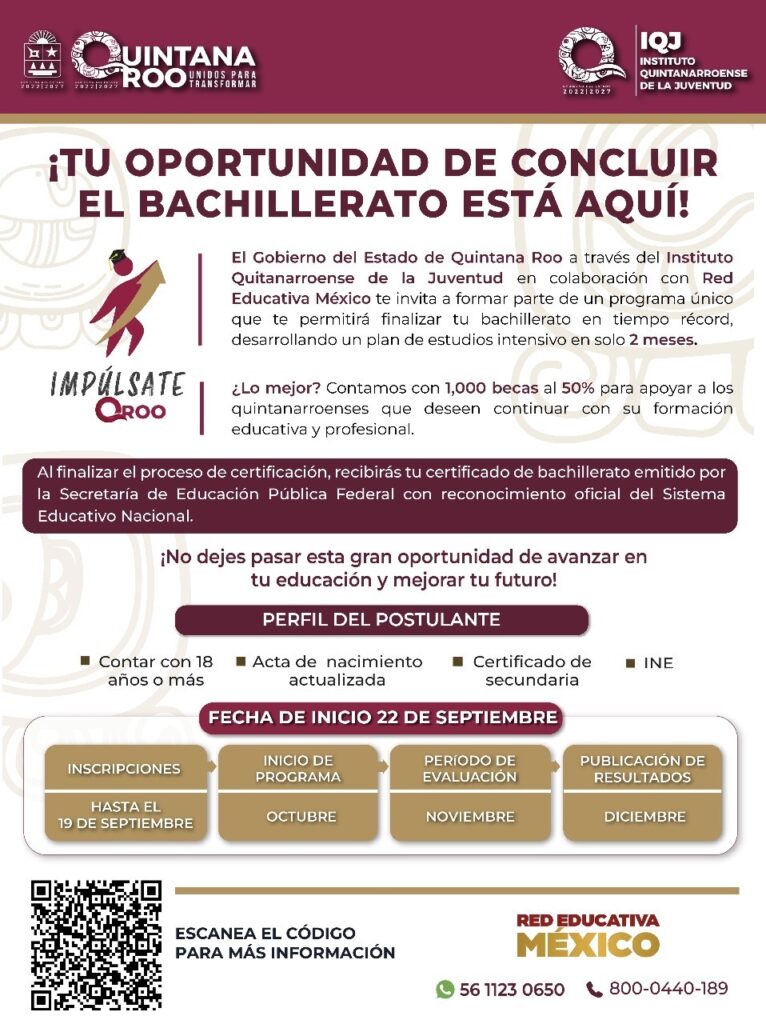 -Para que las y los jóvenes, así como personas adultas concluyan su bachillerato en dos meses Chetumal.- El Gobierno del Estado a través del Instituto Quintanarroense de la Juventud (IQJ), que encabeza Alma Alvarado Moo, en coordinación con Red Educativa México, dio a conocer la apertura de una nueva convocatoria del programa “Impúlsate Quintana Roo”, […]