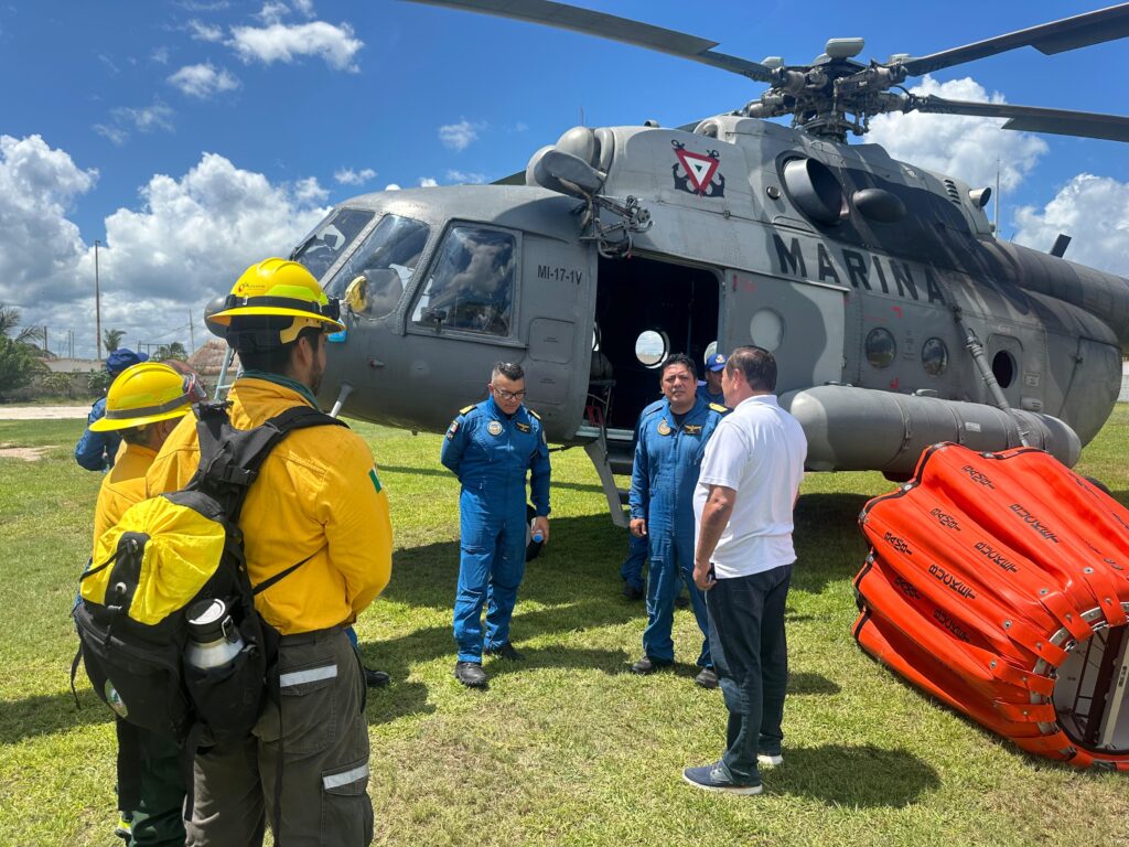 Nivardo Mena supervisa combate del incendio forestal en Holbox.